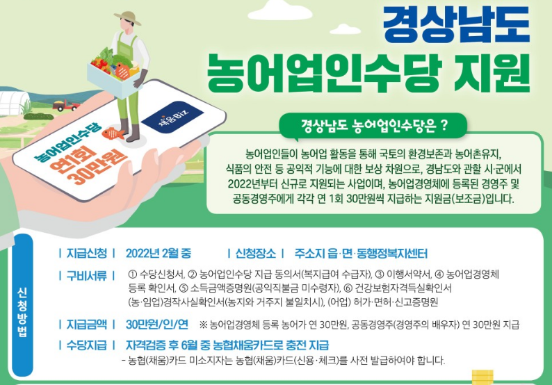 이해하기 쉬운 요약정리 2022년 농어업인수당 지원 신청 안내