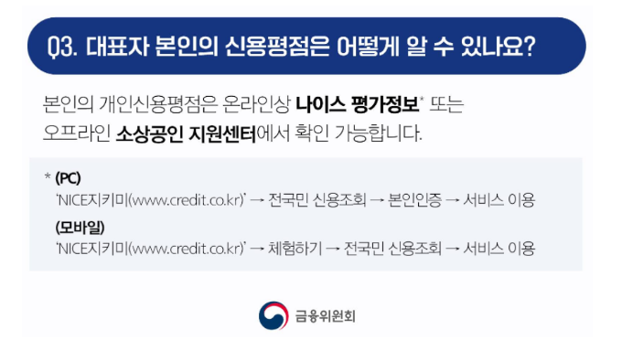 ■ 본인의 신용점수 확인 필요시 나이스평가정보 'NICE 지키미' 인터넷 사이트에서 가능하며 아래 링크에서 확인 가능