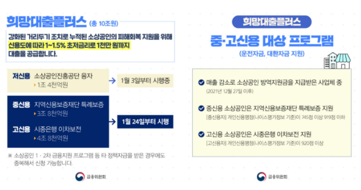 코로나로 힘든 시기를 보내고 있는 소기업 또는 소상공인들이 추가로 1%대 초저금리 신용대출이 가능한 소상공인 희망대출플러스가 제도가 있습니다. 소상공인 희망대출플러스가 제도를 통해 가계에 많은 도움이 되었으면 합니다.